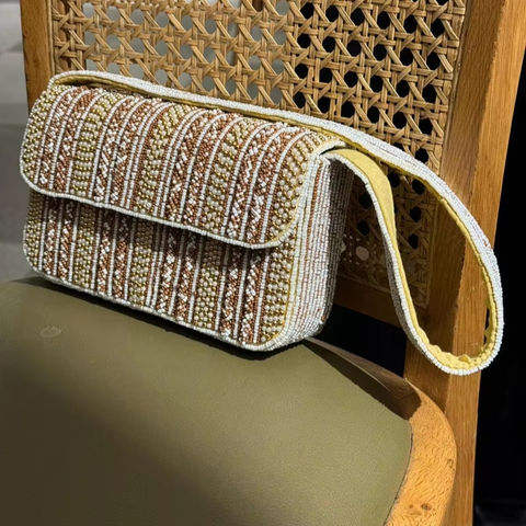 กระเป๋าถือลูกปัดทำมือสไตล์อินเดียสีสันสดใส งานฝีมือประณีตหรูหรา พร้อมหูหิ้วทรงบาแกตต์ ทนทาน ทันสมัย เหมาะสำหรับใช้เป็นของแจก