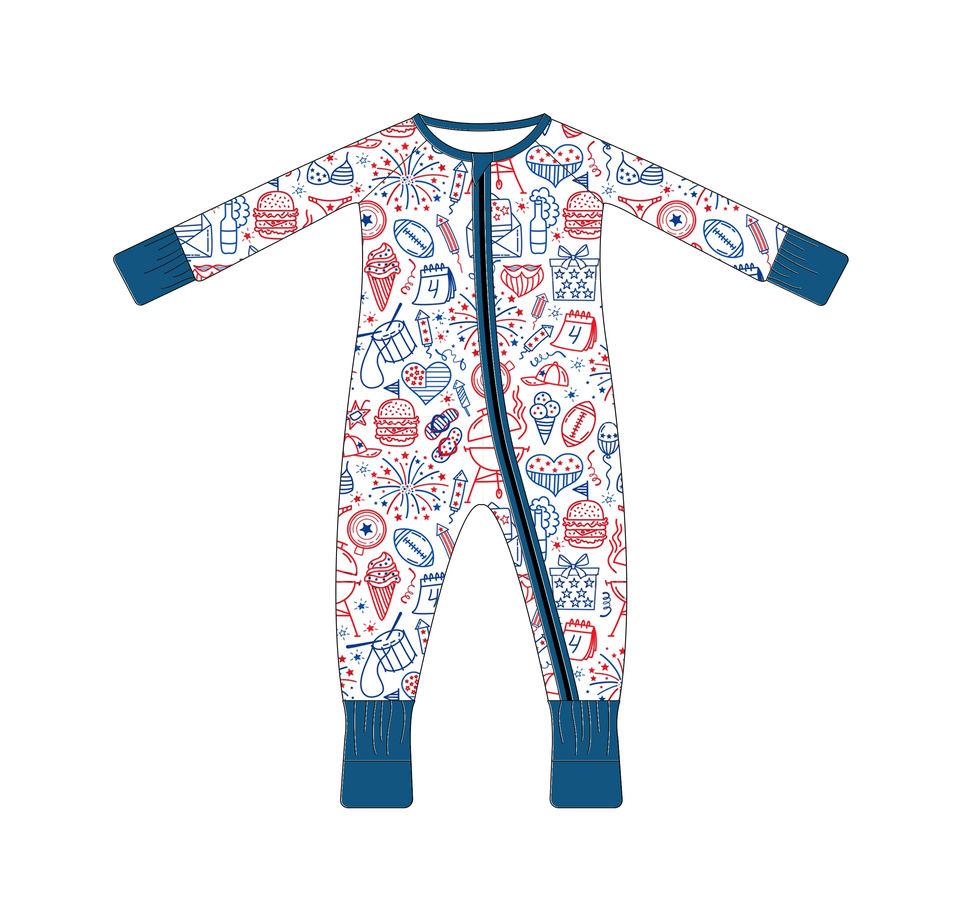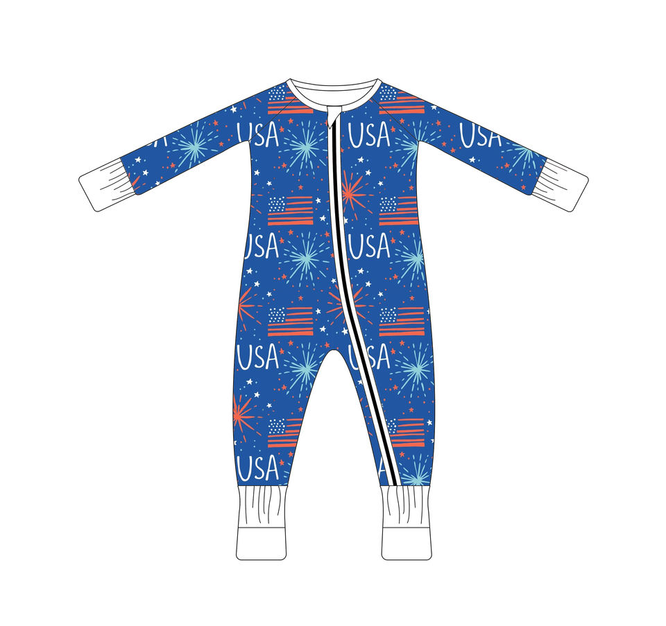 ชุดรอมเปอร์เด็กทารกและเด็กวัยหัดเดินลายดอกไม้ไฟหลากสีสันทำจากผ้าไผ่