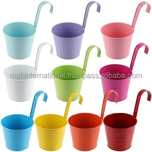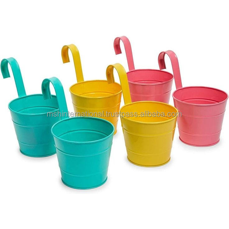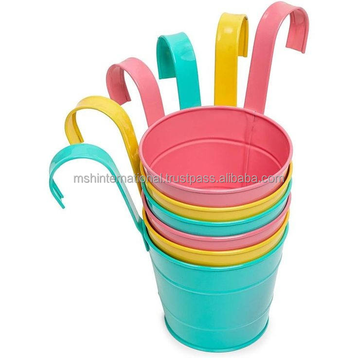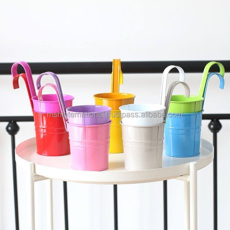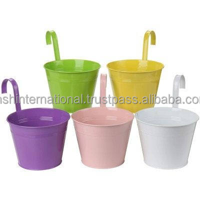 กระถางเหล็กสีสันสดใสสำหรับแขวนต้นไม้,ที่ปลูกต้นไม้บนระเบียงสวนที่ใส่ดอกไม้และถังโลหะ