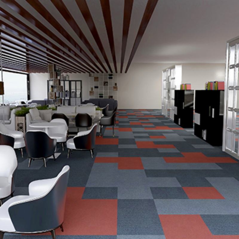 กระเบื้องพรมสำนักงานลายพิมพ์โมเดิร์นแบบจัตุรัสหลากสีสัน ผลิตจากผ้าแจ็คการ์ด ลูปพอยล์ ไนลอน พร้อมแผ่นรองพื้นพีวีซี