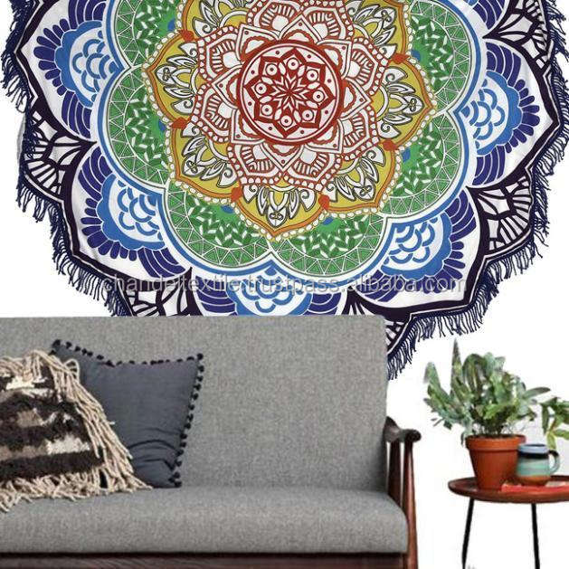 ผ้าปูโต๊ะ/เสื่อโยคะ/ผ้าคลุมชายหาด/ผ้าห่ม/ผ้าตกแต่งผนังลายดอกบัวหลากสีสัน ผลิตในอินเดีย เหมาะสำหรับตกแต่งคริสต์มาส