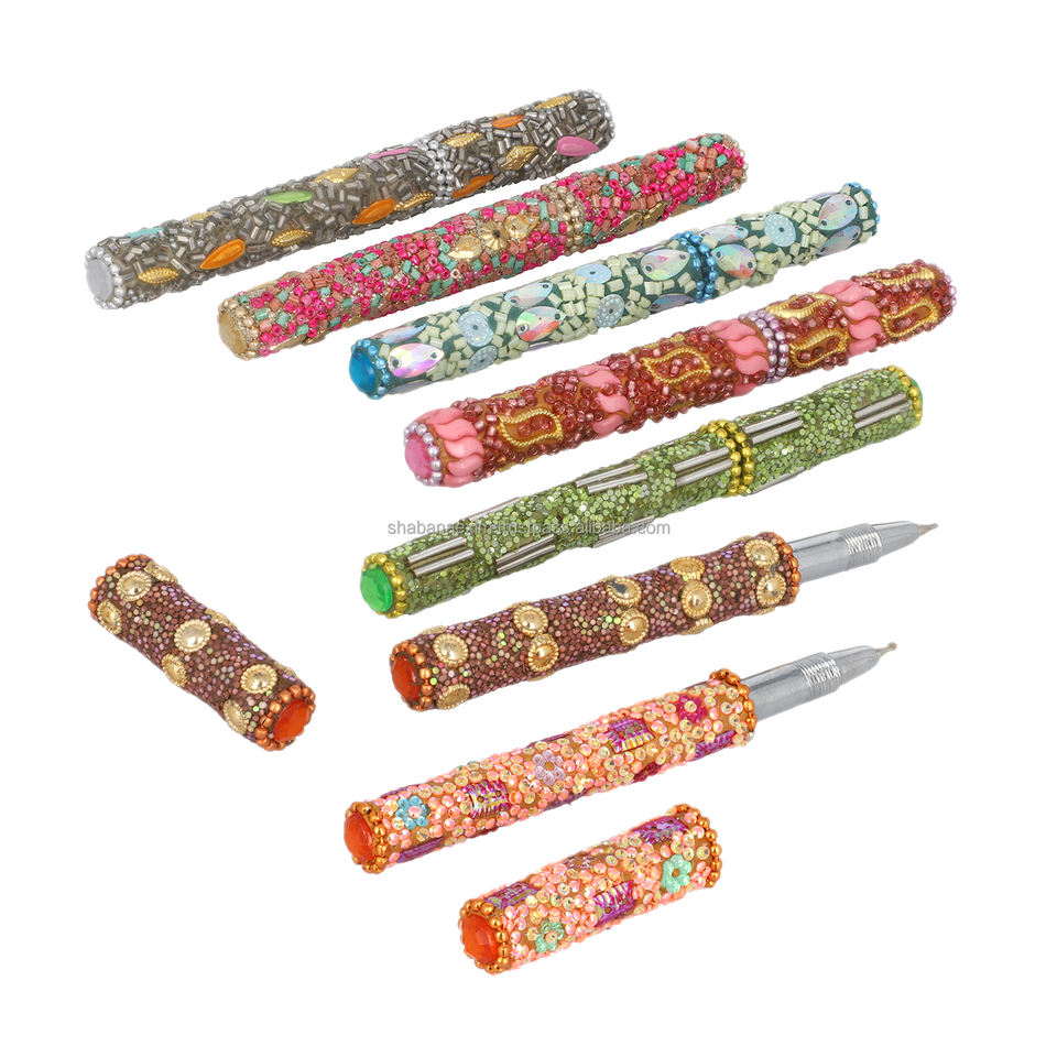 ปากกาลูกปัดหลากสีประดับกลิตเตอร์สวยงาม งานฝีมืออินเดีย ขายส่ง เหมาะสำหรับเป็นของขวัญสำหรับครอบครัว