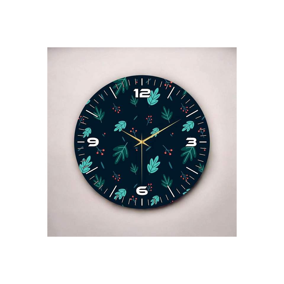 นาฬิกาแขวนผนังลายใบไม้และดอกไม้สีสันสดใสโต๊ะไม้ของขวัญจำนวนเงียบ50ซม. สำหรับตกแต่งบ้านหรือสำนักงาน