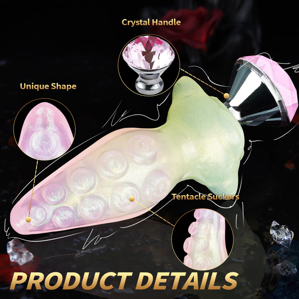 ปลั๊กเสียบก้นรูปหนวดปลาหมึกหลากสี ทำจากซิลิโคนเหลว ฐานโค้ง ดีไซน์เพรียวบาง สวมใส่ได้
