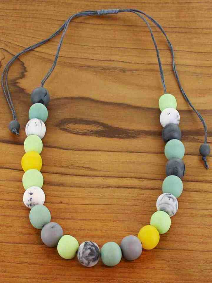 สร้อยคอแฟชั่นสีสันสดใส ประดับด้วยเรซิ่นลายวนที่วาดด้วยมือ สามารถปรับแต่งสีและดีไซน์ได้ เหมาะสำหรับใช้ในชีวิตประจำวันและงานปาร์ตี้