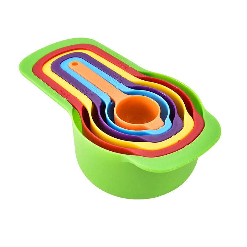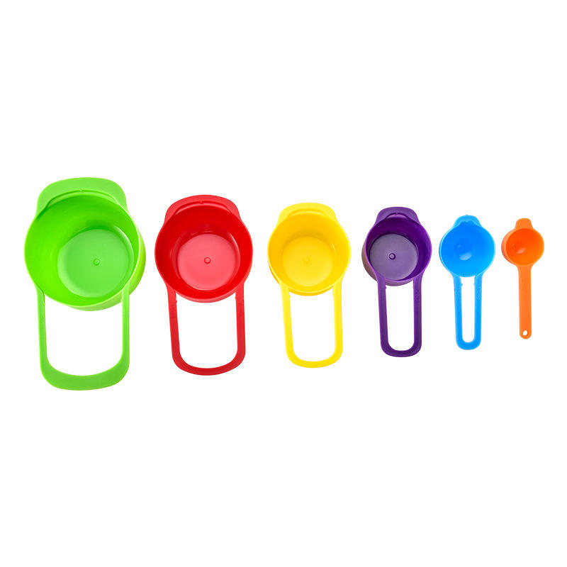 ชุดถ้วยตวงและช้อนหลากสี 6 ชิ้น อุปกรณ์ครัวพลาสติกสำหรับการอบ การปรุงอาหาร และปรุงรส