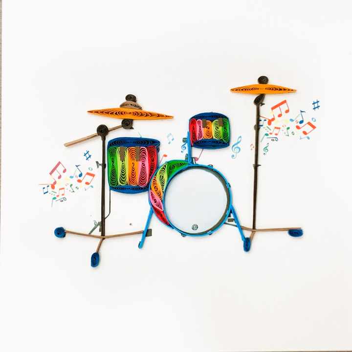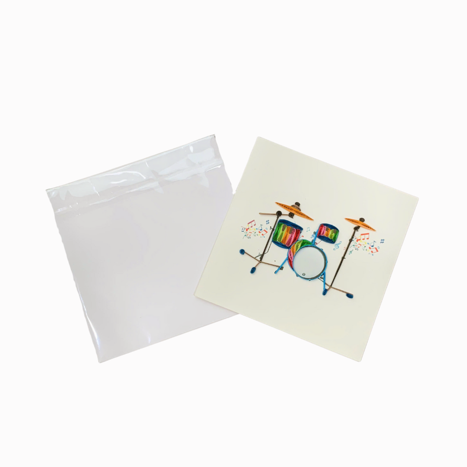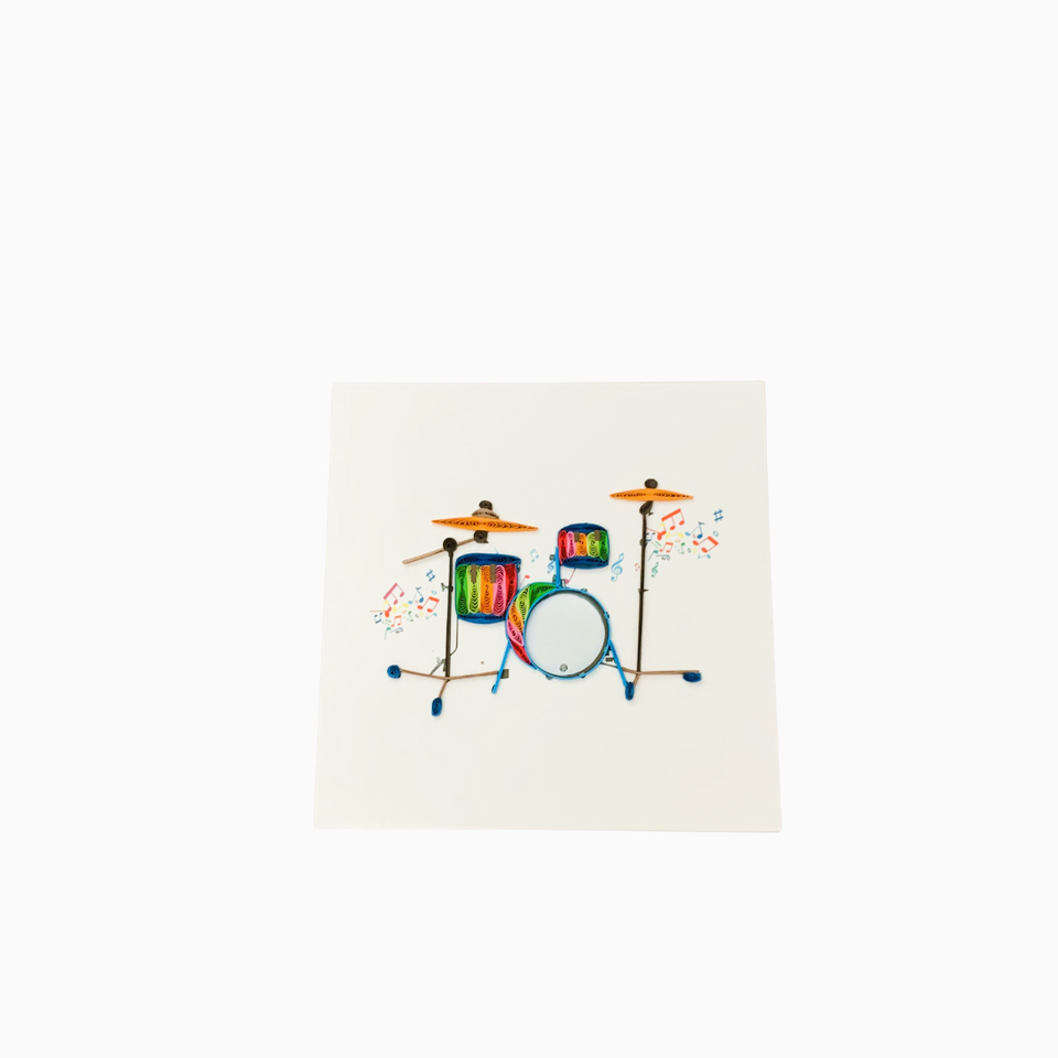 การ์ดควิลลิ่งลายชุดกลองสีสันสดใสทันสมัย การ์ดควิลลิ่งธีมชุดกลองสุดพรีเมียม พร้อมซองจดหมาย สำหรับคนรักดนตรีโดยเฉพาะ