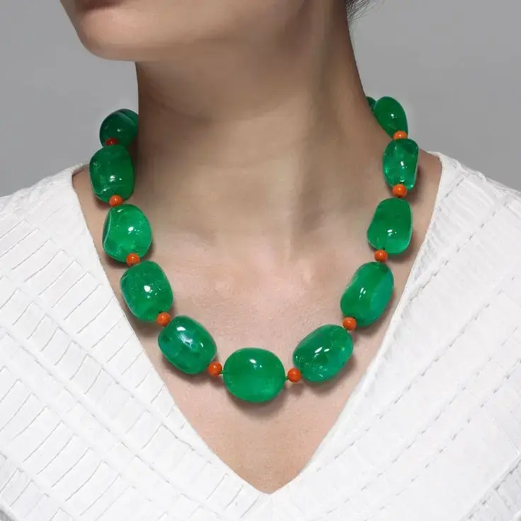 สร้อยคอผู้หญิงหลายชั้นหลากสีลูกปัดเม็ดใหญ่เรซิ่นคริสตัลไข่มุกไม้สไตล์คลาสสิกสำหรับคนรัก