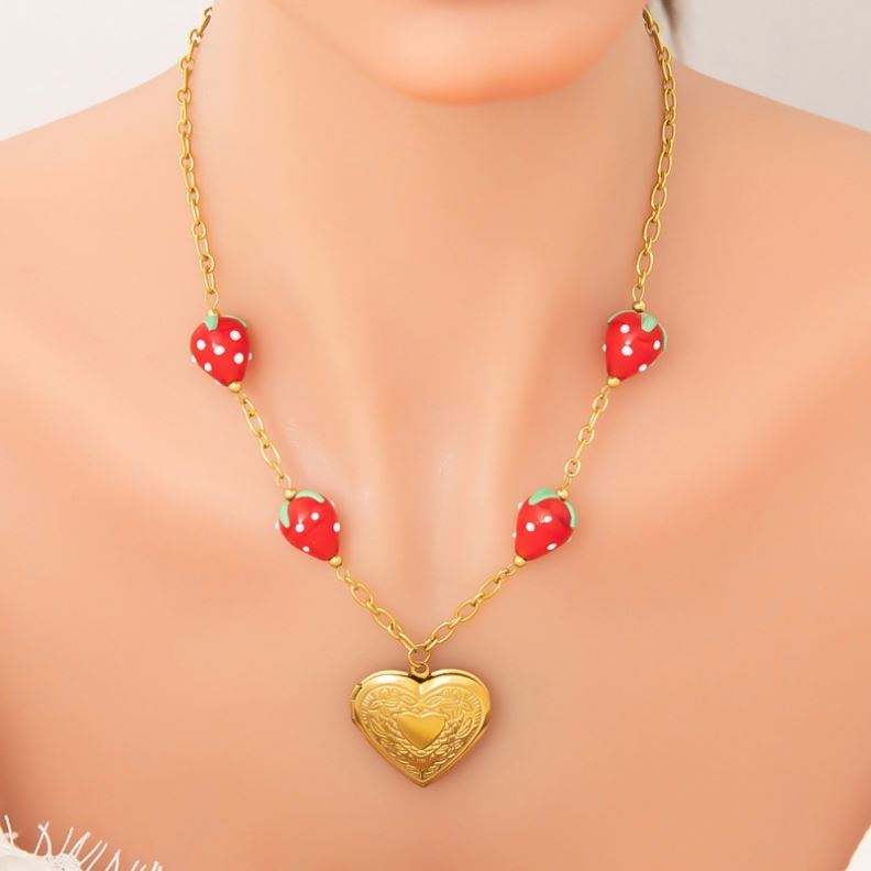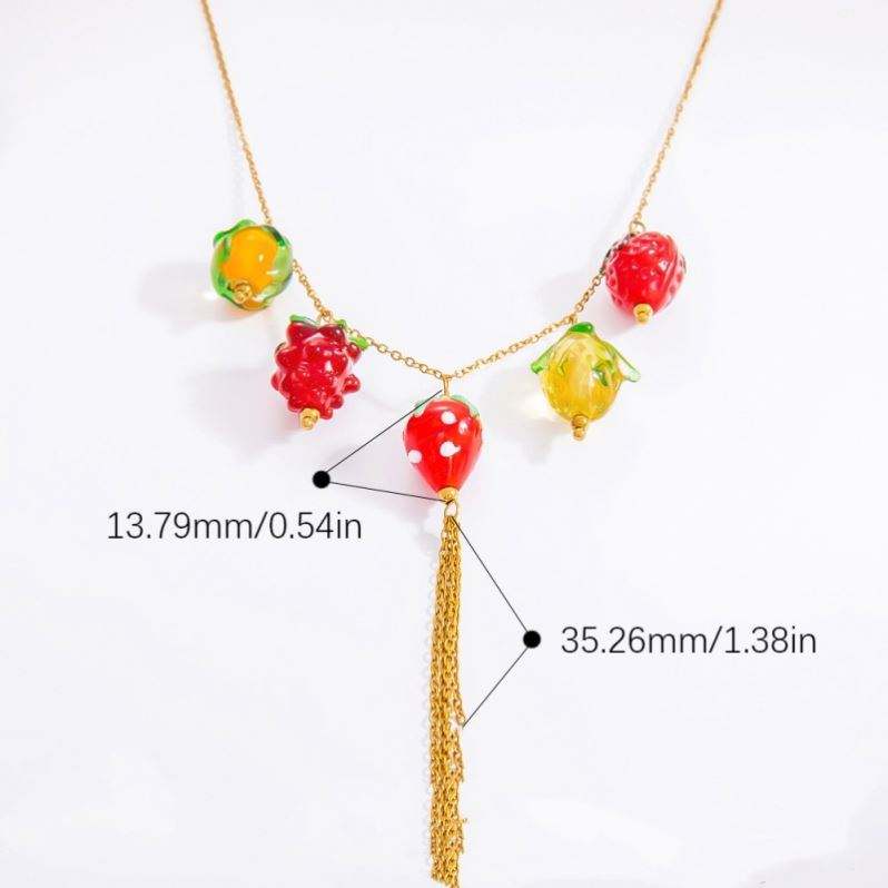 สร้อยคอจี้หยดน้ำมันหลากสีเชอร์รี่ผลไม้สแตนเลสสตีลเครื่องประดับสำหรับผู้หญิง