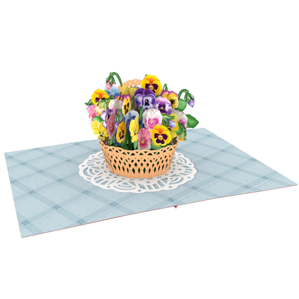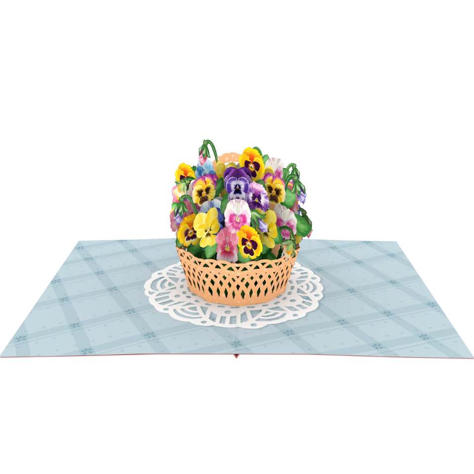 กระเช้าดอกไม้ Pansy หลากสี3D การ์ดอวยพรป๊อปอัพพร้อมซองการ์ดอวยพรแฮนด์เมดสุดหรูสำหรับเป็นของขวัญวันเกิดในทุกโอกาส