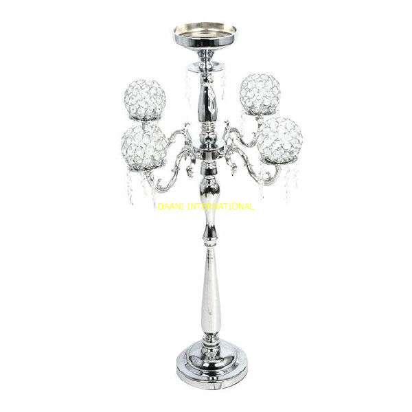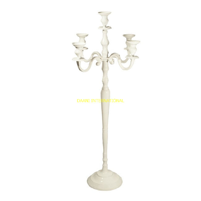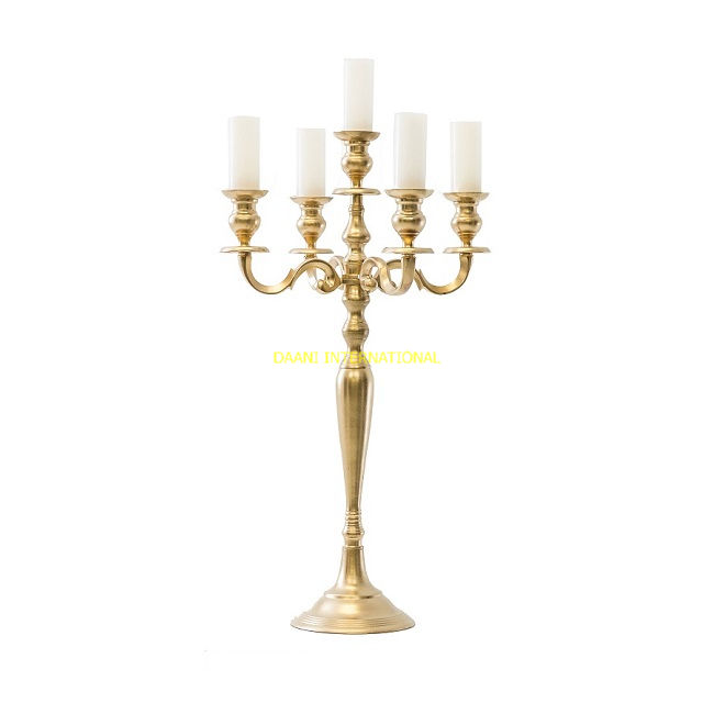 เชิงเทียนเชิงเทียน5แขนสีชมพูพร้อมเทียนสดใสสำหรับงานเลี้ยงงานแต่งงานจัดเลี้ยงโต๊ะกลางเชิงเทียน