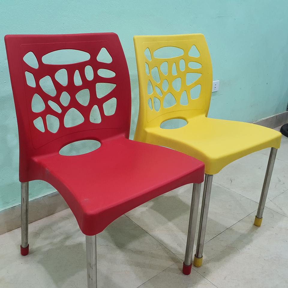 เก้าอี้รับประทานอาหารทำจากพลาสติกสีสันสดใสดีไซน์น้ำหนักเบาสำหรับใช้ในชีวิตประจำวัน