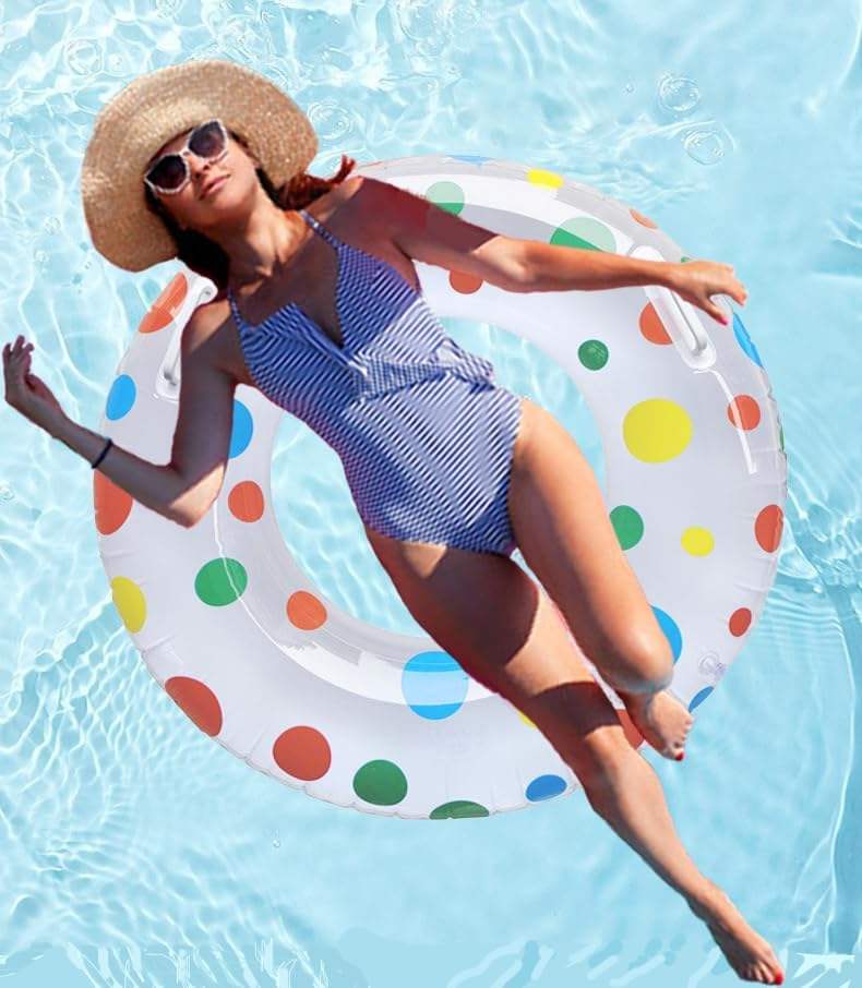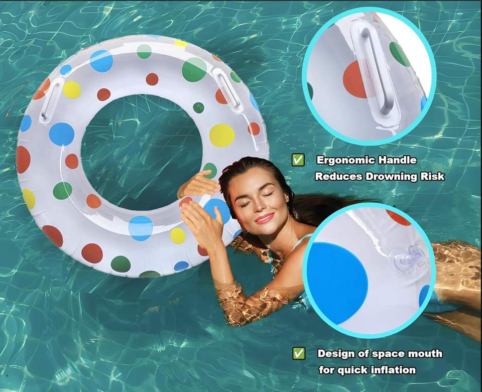 ห่วงยางว่ายน้ำพีวีซีลายจุดสีสันสดใสสำหรับผู้ใหญ่และเด็ก