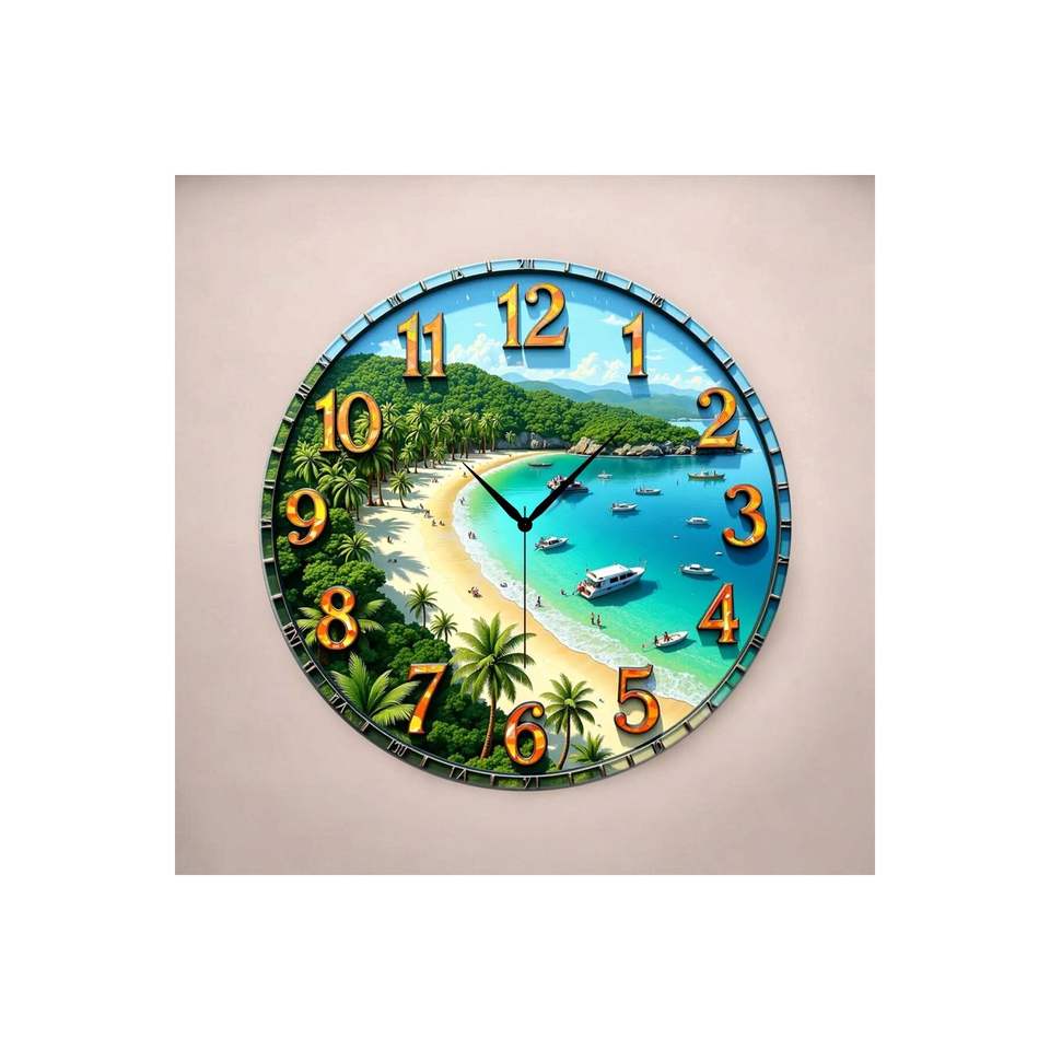 นาฬิกาแขวนผนังทรงกลมไม้พิมพ์ลายสีสันสดใส ขนาด 45x45 ซม. สไตล์คลาสสิก ผลิตในตุรกี เหมาะเป็นของขวัญ