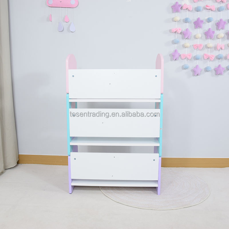 ชั้นวางหนังสือเด็ก 3 ชั้น รูปทรงตัวต่อหลากสีสัน ชั้นเก็บของเล่นเด็ก ชั้นวางโชว์