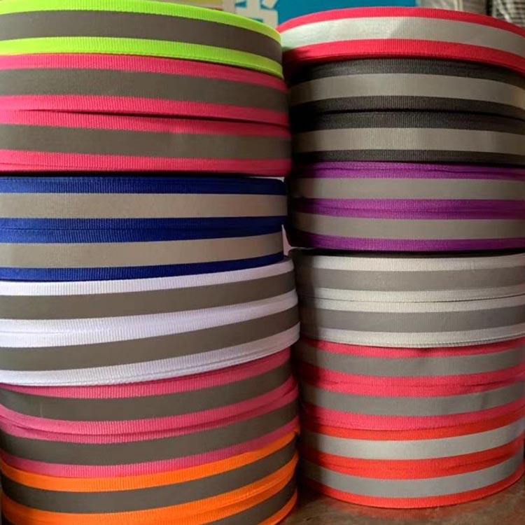 สายรัดผ้าแจ็คการ์ดสะท้อนแสงสีสันสดใสแถบเตือนที่เป็นมิตรต่อสิ่งแวดล้อมสำหรับชุดนักเรียนที่ทำจากโพลีเอสเตอร์