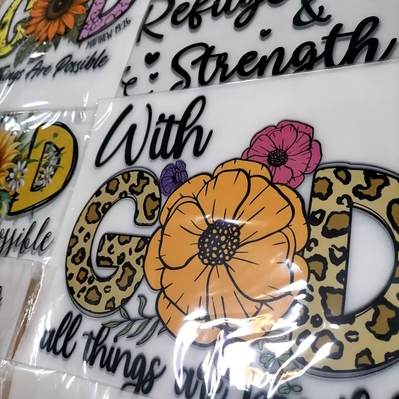 ที่มีสีสันทางศาสนาพระคัมภีร์บทกวีเหล็กบน DTF การถ่ายโอนความเชื่อพระเยซูพระเจ้าสติกเกอร์พร้อมที่จะกดถุงเสื้อยืด
