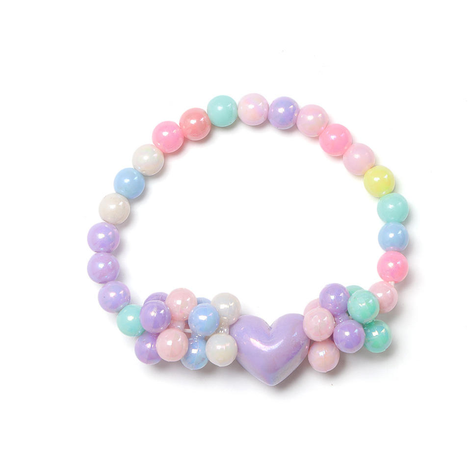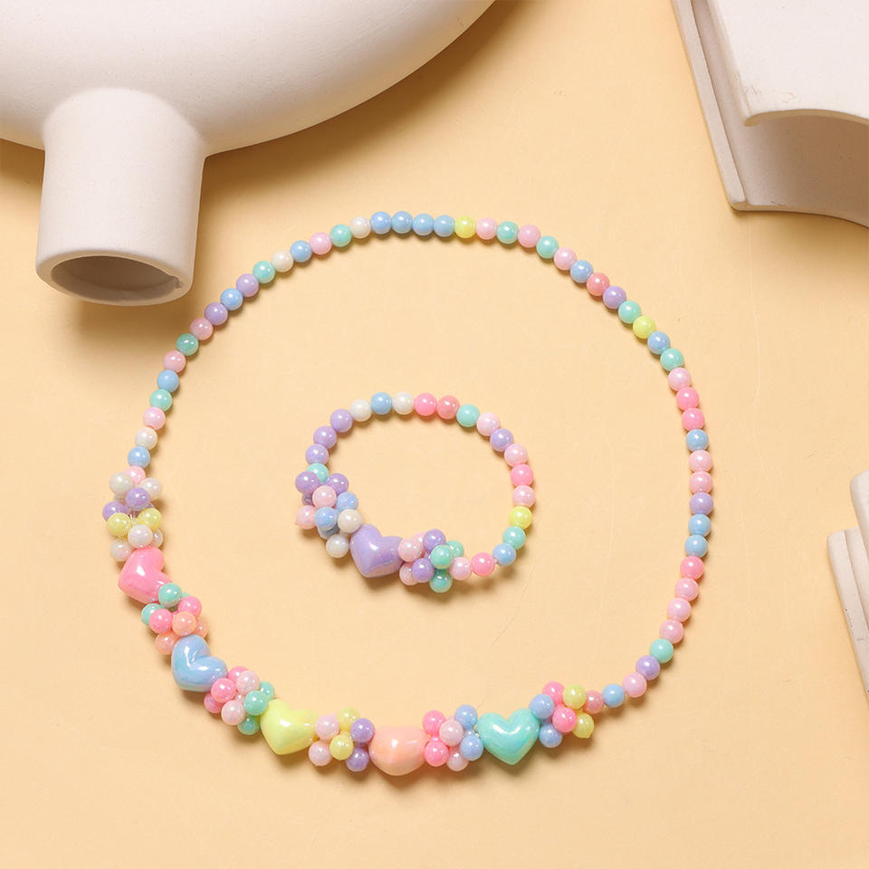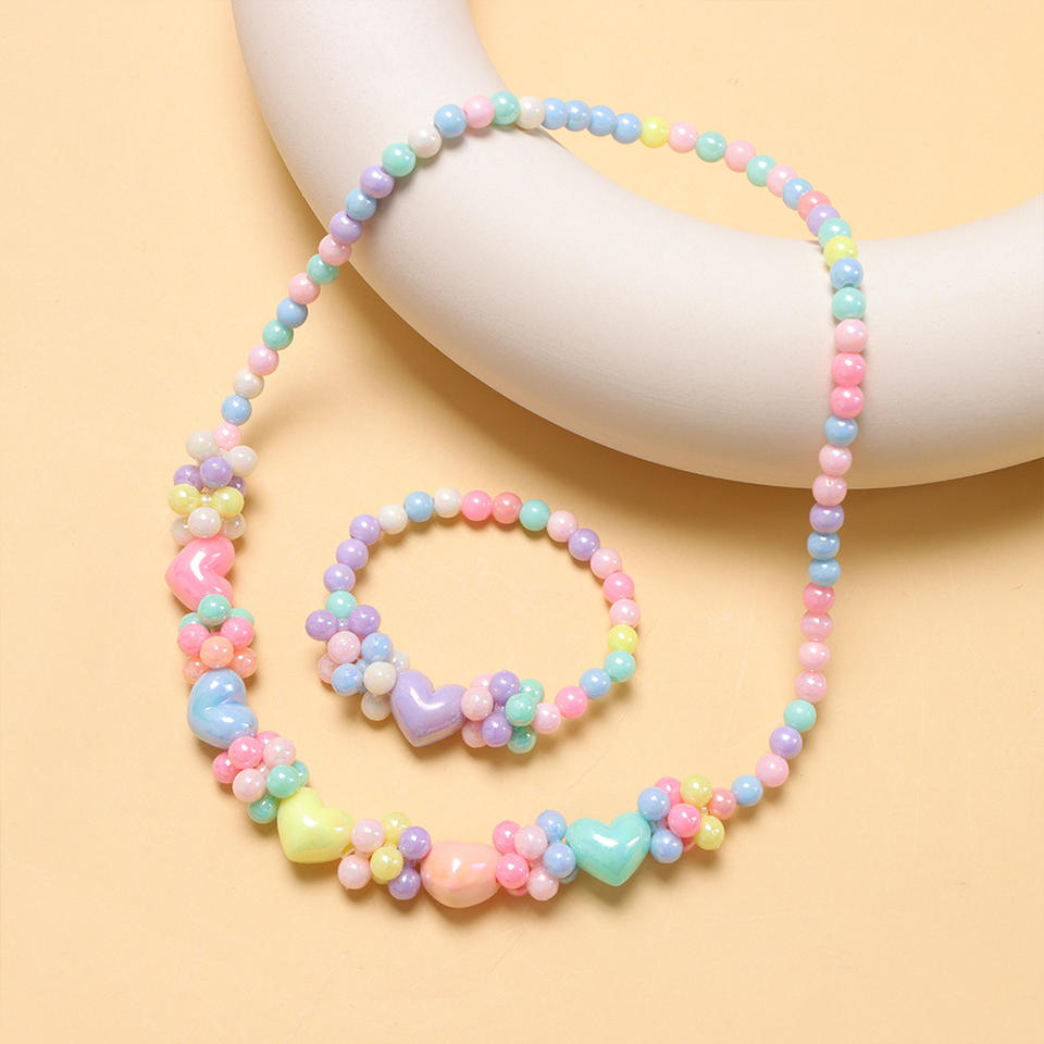 Colorful Resin Heart Necklace Bracelet Set For Kids Princess Jewelry Gift