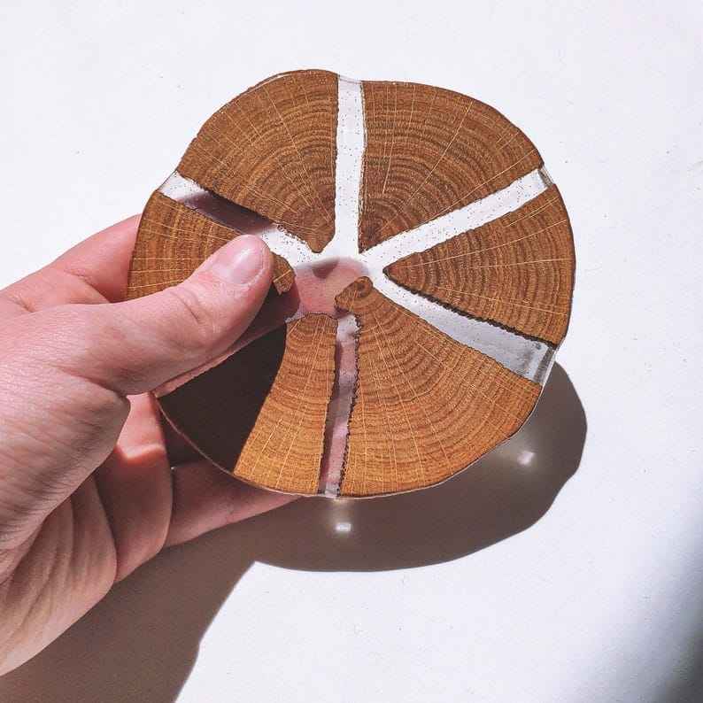ถาดรองแก้วทำจากเรซินสีสันสดใสและตกแต่งบ้านทันสมัยถาดรองแก้วทำจากไม้เรซิ่นสองโทนอุปกรณ์เสริมโต๊ะทำด้วยมือ