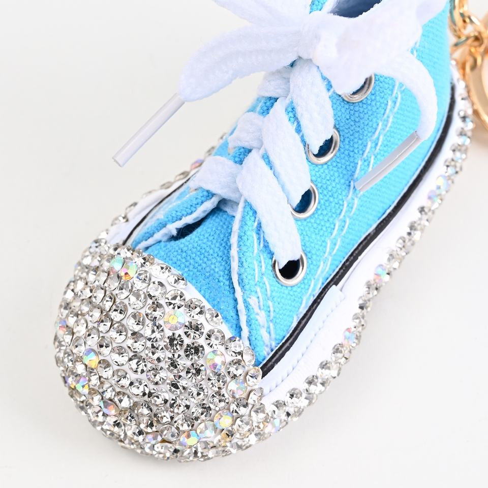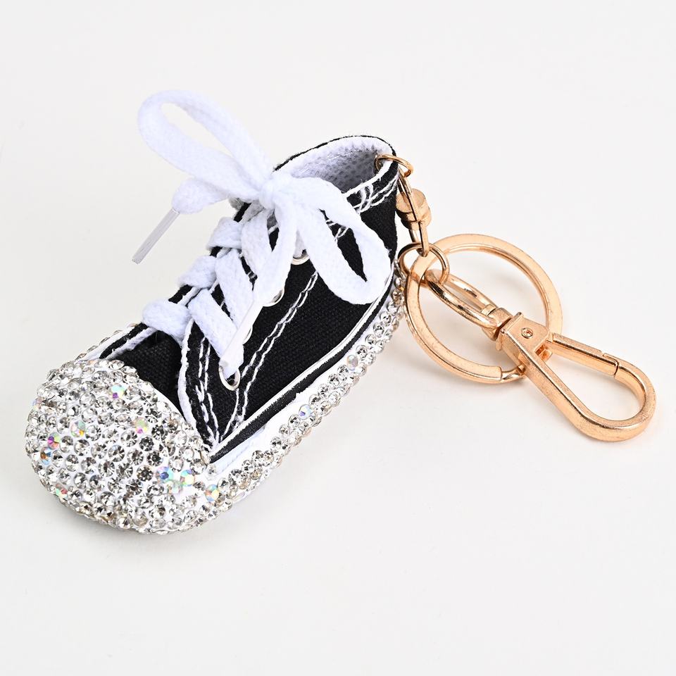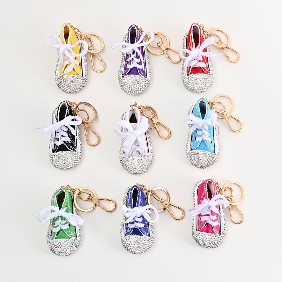 พวงกุญแจรองเท้าผ้าใบจิ๋วประดับเพชรหลากสีสัน ของตกแต่งกระเป๋า จี้ห้อยกระเป๋า สำหรับกุญแจรถและกระเป๋า ขายส่ง