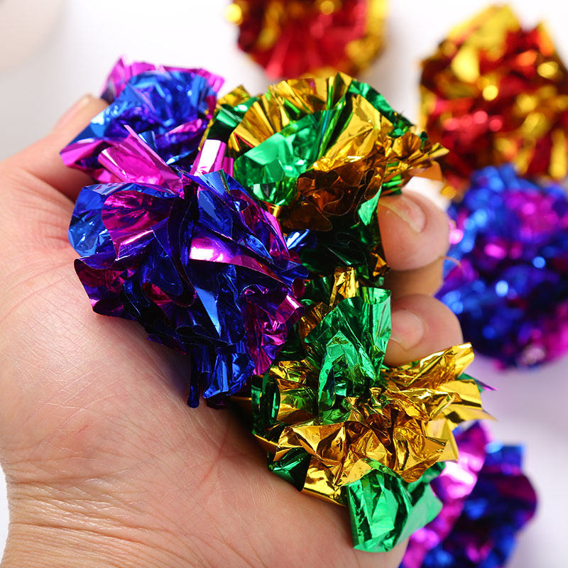 ของเล่นแมวกระดาษวงแหวนหลากสีและโลหะ พร้อมโลโก้สั่งทำ ลูกบอลเสียงกรอบแกรบ ขนาด 5 ซม. สำหรับลูกแมว