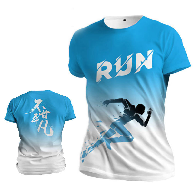 เสื้อยืดกราฟิกนักวิ่งสีสันสดใสสำหรับผู้ชาย เสื้อกีฬาวิ่งมาราธอน เสื้อซับลิเมชั่น 3 มิติ ระบายอากาศได้ดี แห้งเร็ว เสื้อออกกำลังกาย