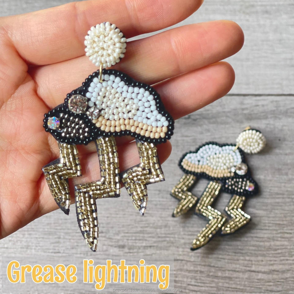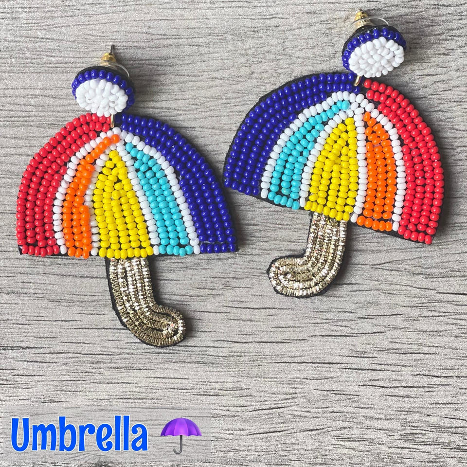 ต่างหูทรงหยดน้ำลายดอกไม้ประดับลูกปัดหลากสีสไตล์โบฮีเมียน รูปไอศกรีม สายรุ้ง ร่ม เมฆ สายฟ้า ทำด้วยมือ