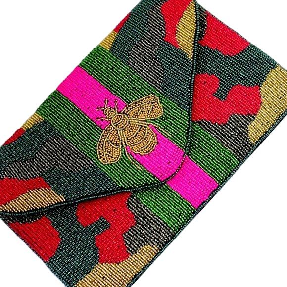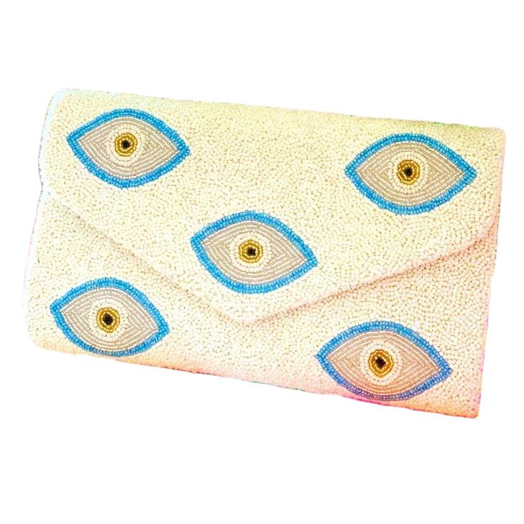 กระเป๋าคลัทช์ปักลูกปัดหลากสี ดีไซน์ตา งานเย็บมือ กระเป๋าคลัทช์ปักลูกปัดสำหรับงานกลางคืน ขายส่ง