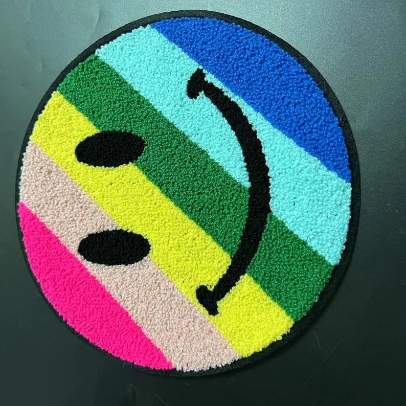 ผ้ากำมะหยี่ปักลายยิ้มหลากสีสำหรับเสื้อยืดหรือกางเกงยีนส์