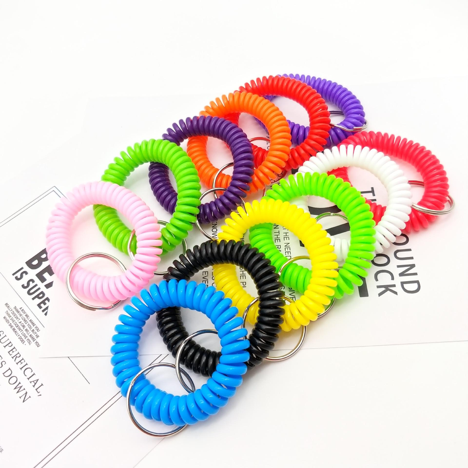 สายรัดข้อมือแบบขดสปริงสีสันสดใสพวงกุญแจเหล็กพลาสติกร้อนพวงกุญแจผู้ถือพวงกุญแจสำหรับว่ายน้ำสบาย