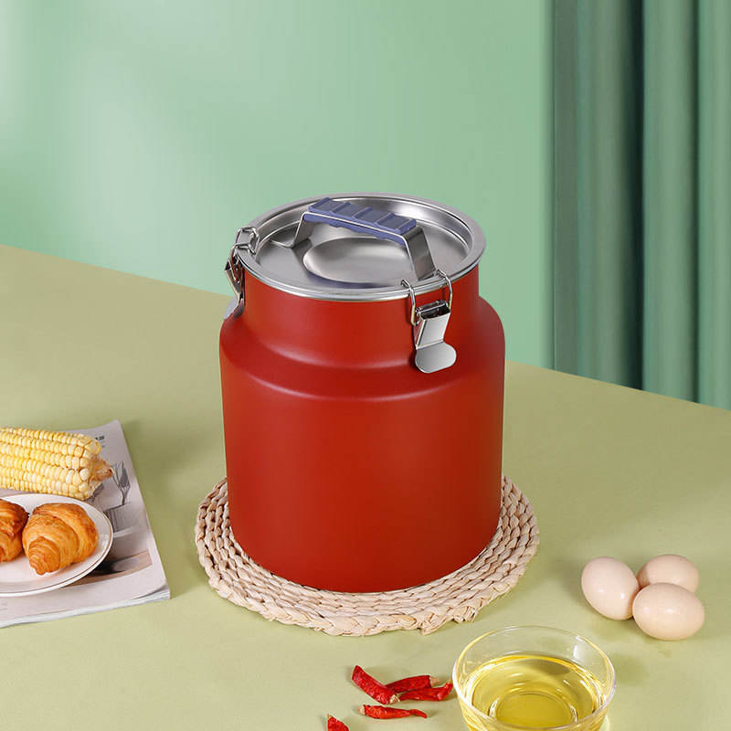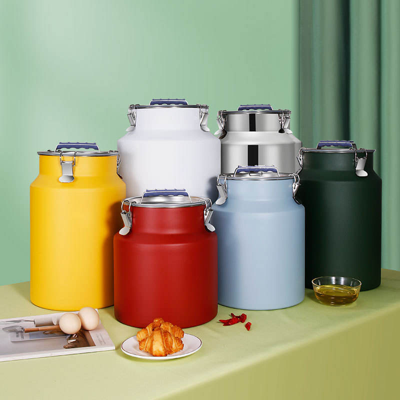 โถเก็บของสแตนเลสสีสันสดใส ฝาปิดโลหะทรงกระบอก ปิดสนิท ความจุขนาดใหญ่ สำหรับเก็บข้าว แป้ง น้ำมัน ชา ใช้ในครัวเรือน