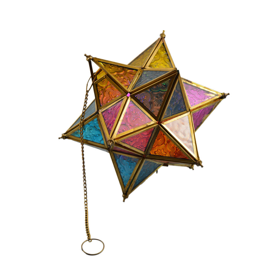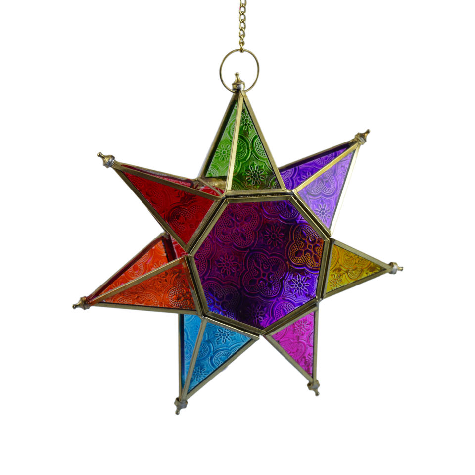 โคมไฟแขวนรูปดาวหลากสีสัน ดีไซน์หลากสีสันสวยงาม เหมาะสำหรับตกแต่งสวน โคมไฟตกแต่งภายในบ้านสำหรับเทศกาล ทำจากแก้ว
