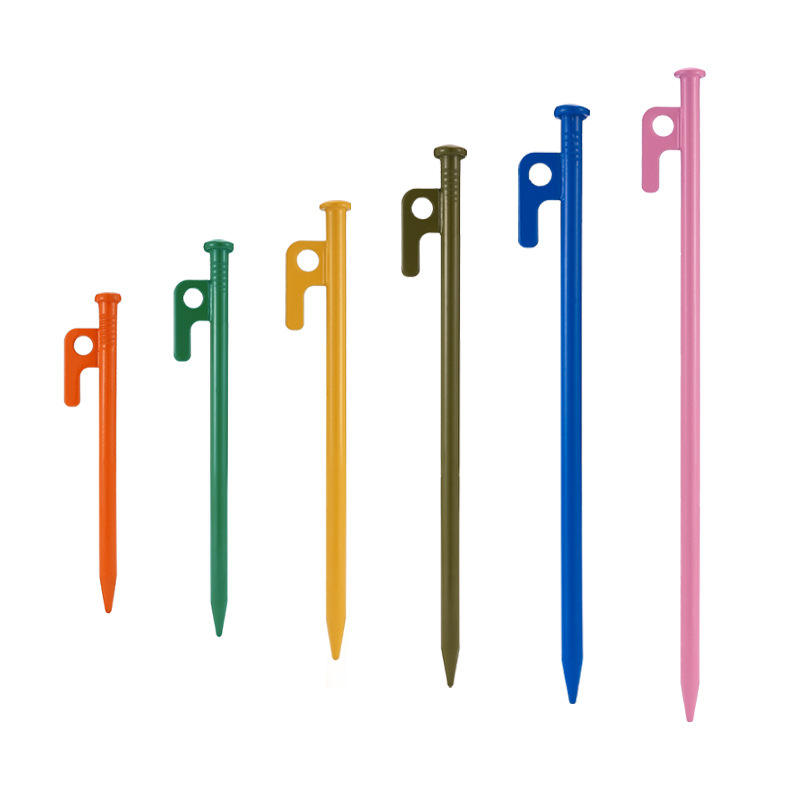 สมอบกเหล็กหลากสี ขนาด 20-40 ซม. แบบหนา สำหรับผ้าใบกันน้ำ ใช้สำหรับตั้งแคมป์กลางแจ้ง พร้อมค้อนในชุด