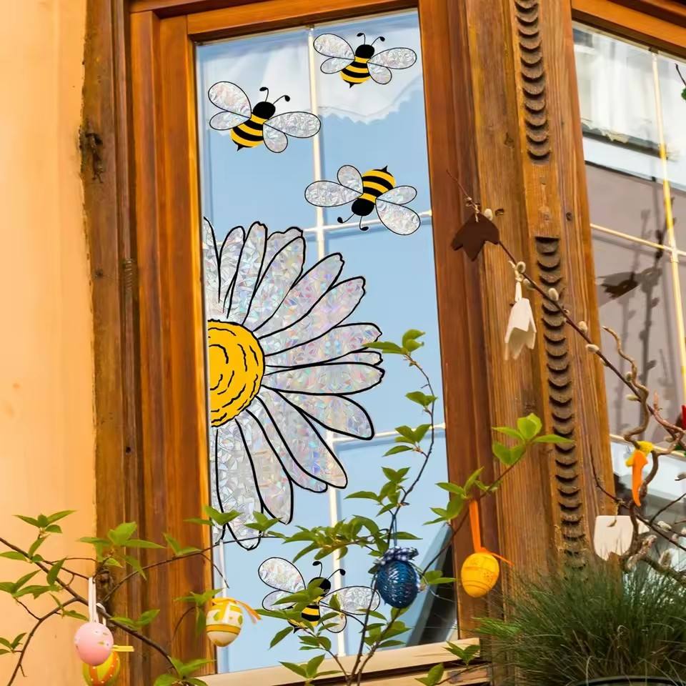 ชุดสติกเกอร์หน้าต่างรูปดอกทานตะวันและผึ้งสีสันสดใสสติกเกอร์ตกแต่งหน้าต่างรูปฤดูใบไม้ผลิสำหรับตกแต่งบ้านและสำนักงาน