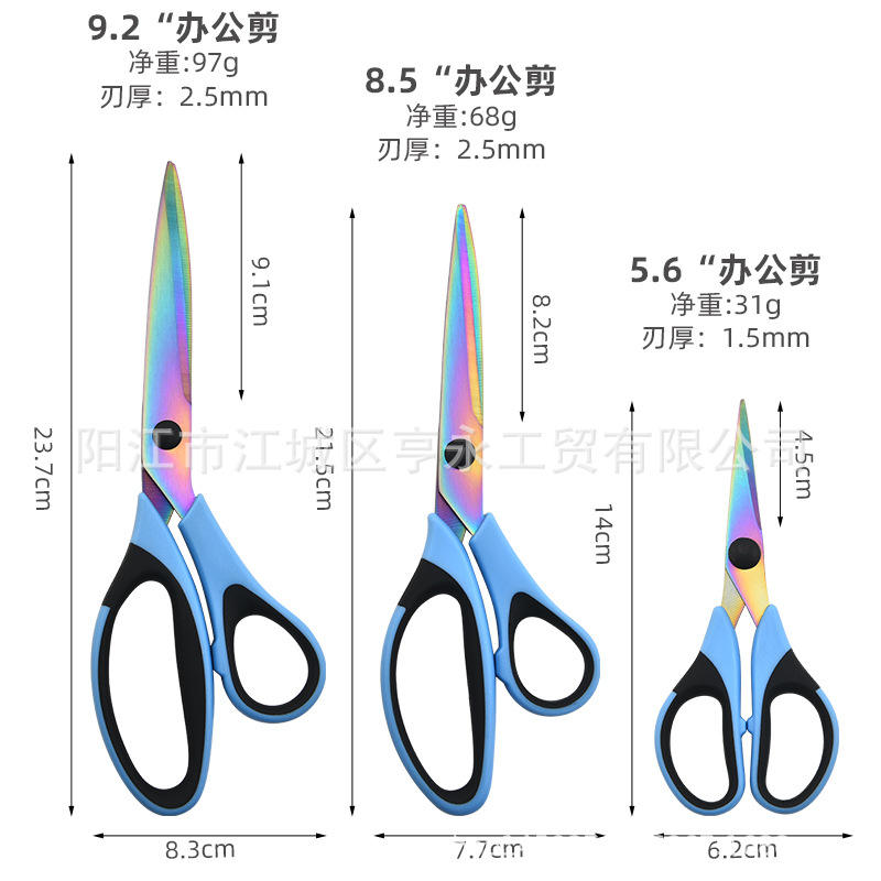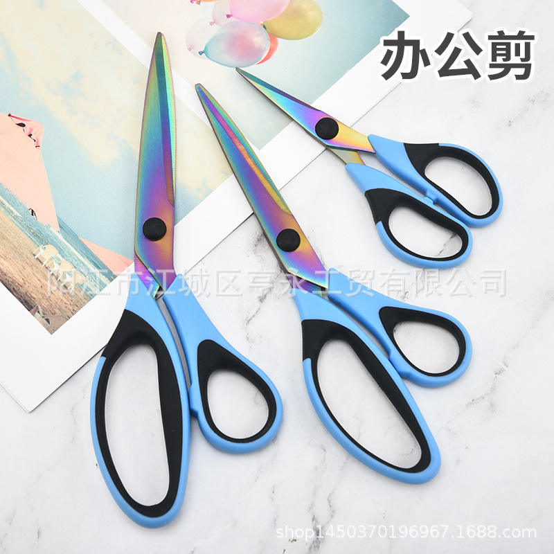 ชุดกรรไกรไทเทเนียมหลากสี ใบมีดสแตนเลส รูปตัววี สีม่วง น้ำเงิน เขียว สำหรับใช้ในบ้าน สำนักงาน ตัดเย็บเสื้อผ้า ตัดผ้า