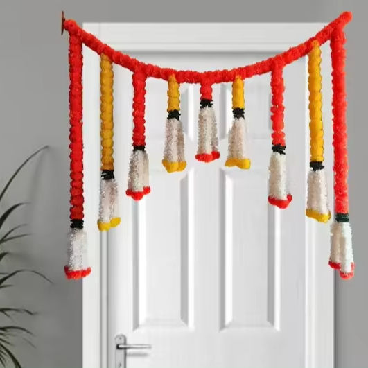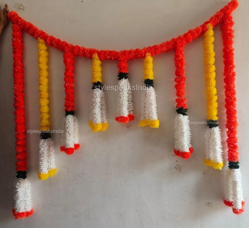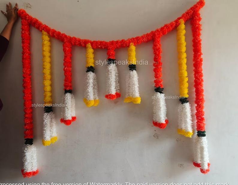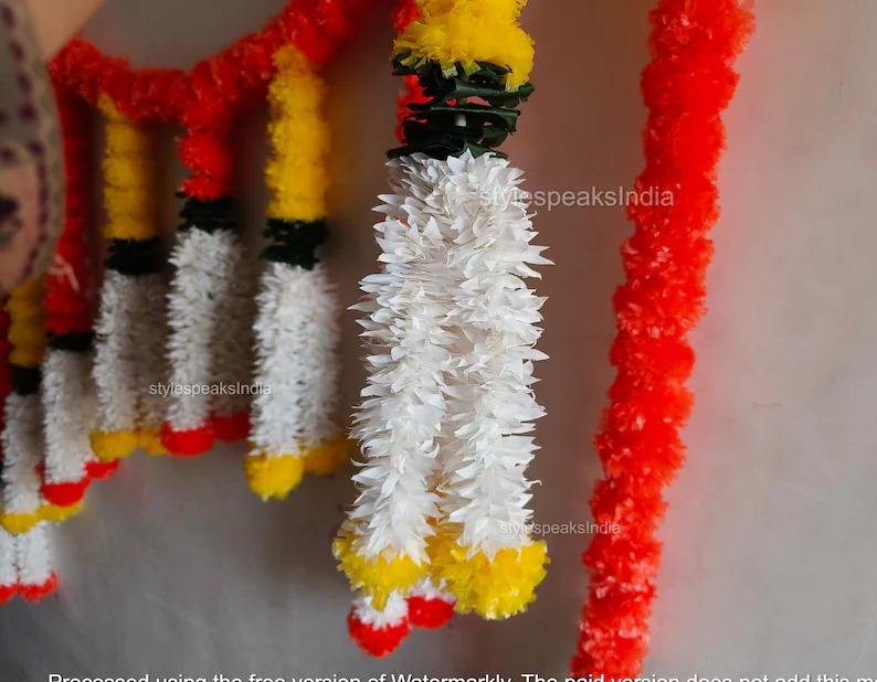 พวงมาลัยดอกดาวเรืองประดิษฐ์ Toran สีสันสดใสพวงมาลัยงานแต่งงานแบบอินเดียพวงดอกไม้จัสมินพวงเทศกาลอินเดีย Bandarwar Boho