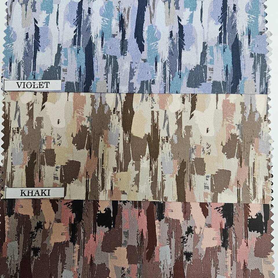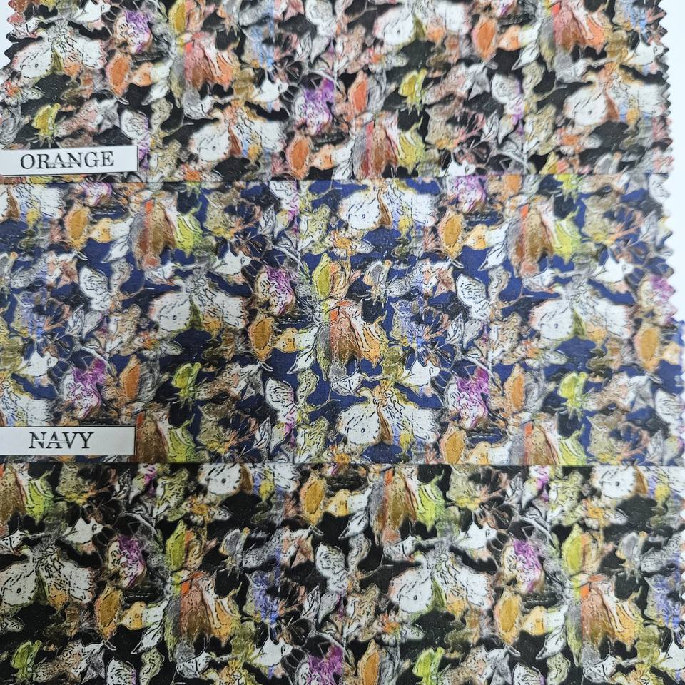 ผ้าฝ้ายพิมพ์ลายดิจิทัลแบบแอบสแตรกและลายดอกไม้สีสันสดใสความกว้าง44นิ้วผ้านับ60วินาทีพร้อมส่งทันที