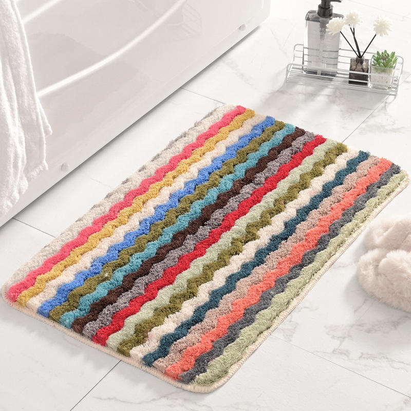พรมเช็ดเท้ากันลื่นลายคลื่นสีสันสดใสแผ่นปูรองเท้ากันลื่นสำหรับห้องนอนโรงแรมใช้ในห้องน้ำในบ้าน