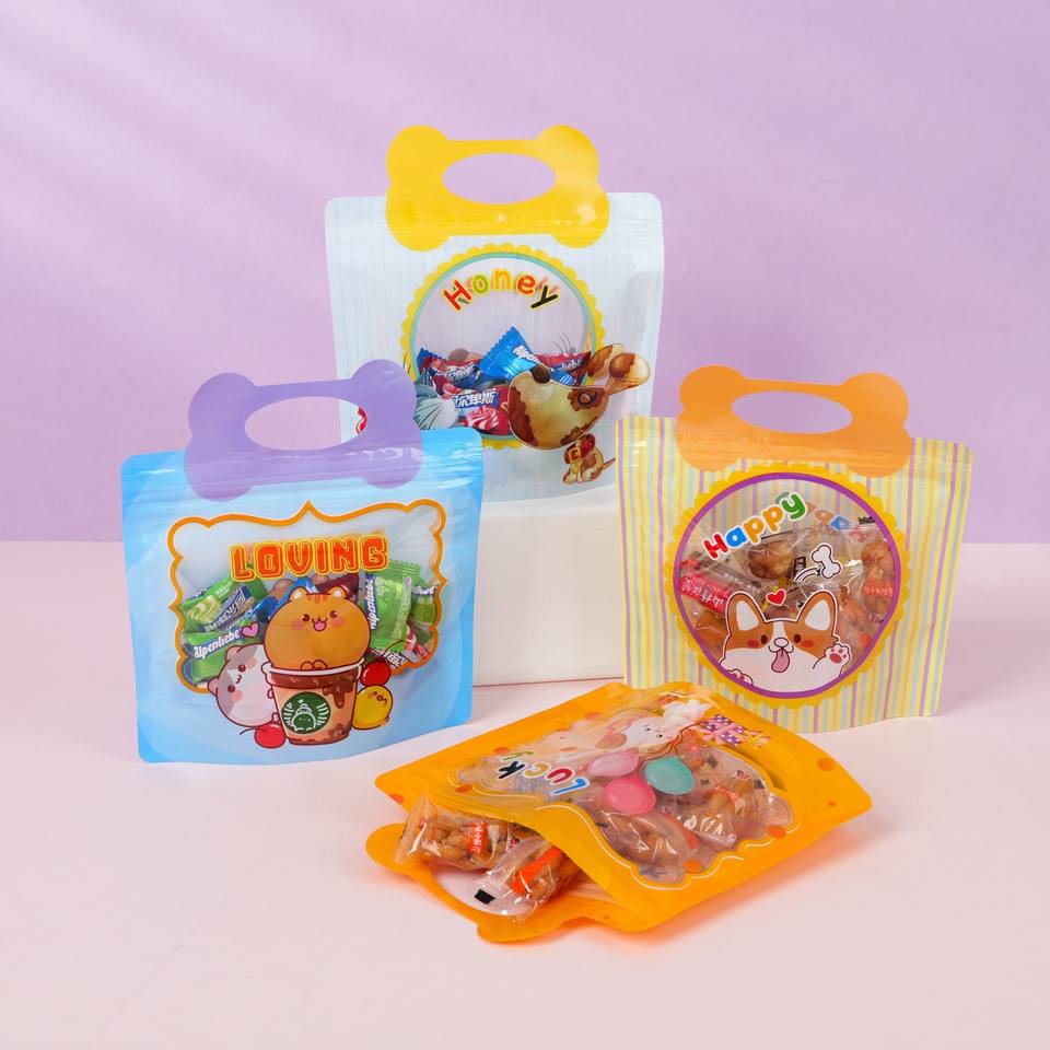 ถุงบรรจุภัณฑ์แบบตั้งได้ รูปทรงน่ารัก สีสันสดใส สำหรับบรรจุขนม/ของว่าง/ของเล่นชิ้นเล็ก/เครื่องปรุงรส พร้อมหูหิ้ว