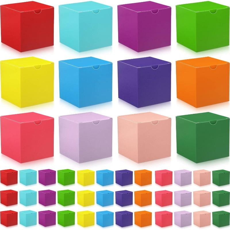 กล่องของขวัญสีสันสดใสพร้อมฝาปิด กล่องของขวัญกระดาษแข็งขนาดเล็ก กล่องทรงลูกบาศก์กระดาษคราฟท์ สามารถปรับแต่งได้ตามความต้องการ