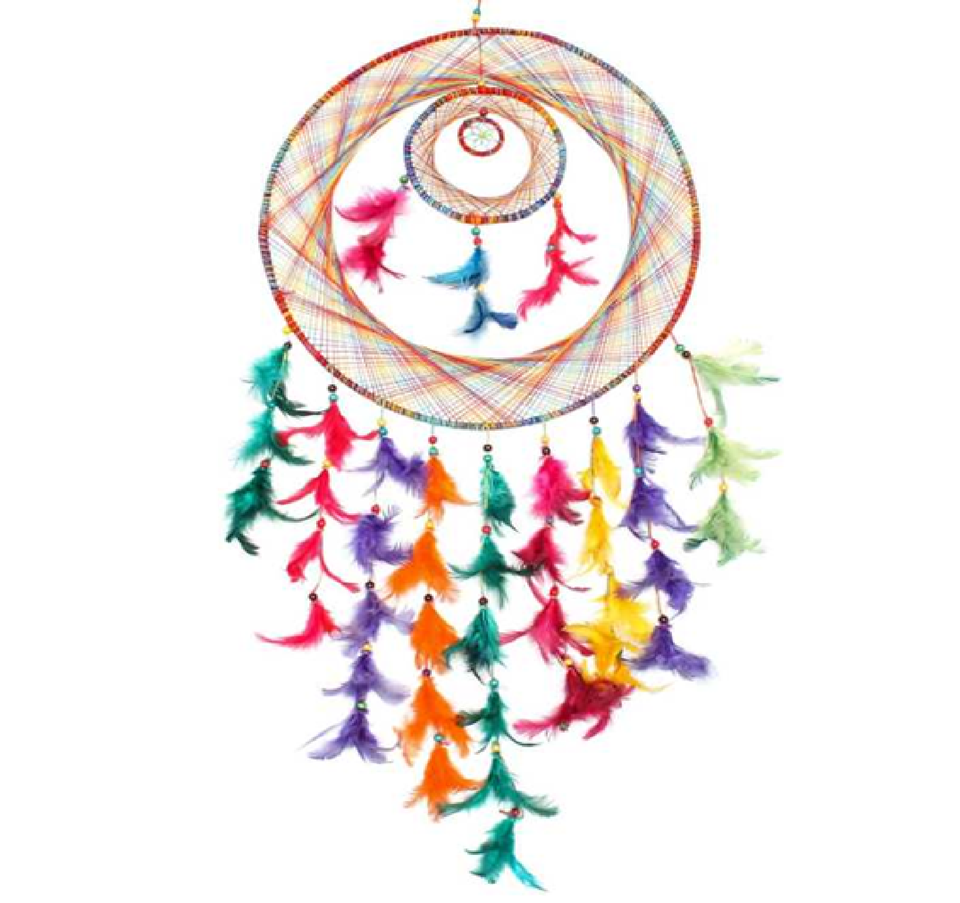 เครื่องดักฝันลายสายรุ้งสีสันสดใส เหมาะสำหรับตกแต่งผนังบ้าน ห้องนั่งเล่น ห้องนอน มีจำหน่ายในราคาขายส่ง