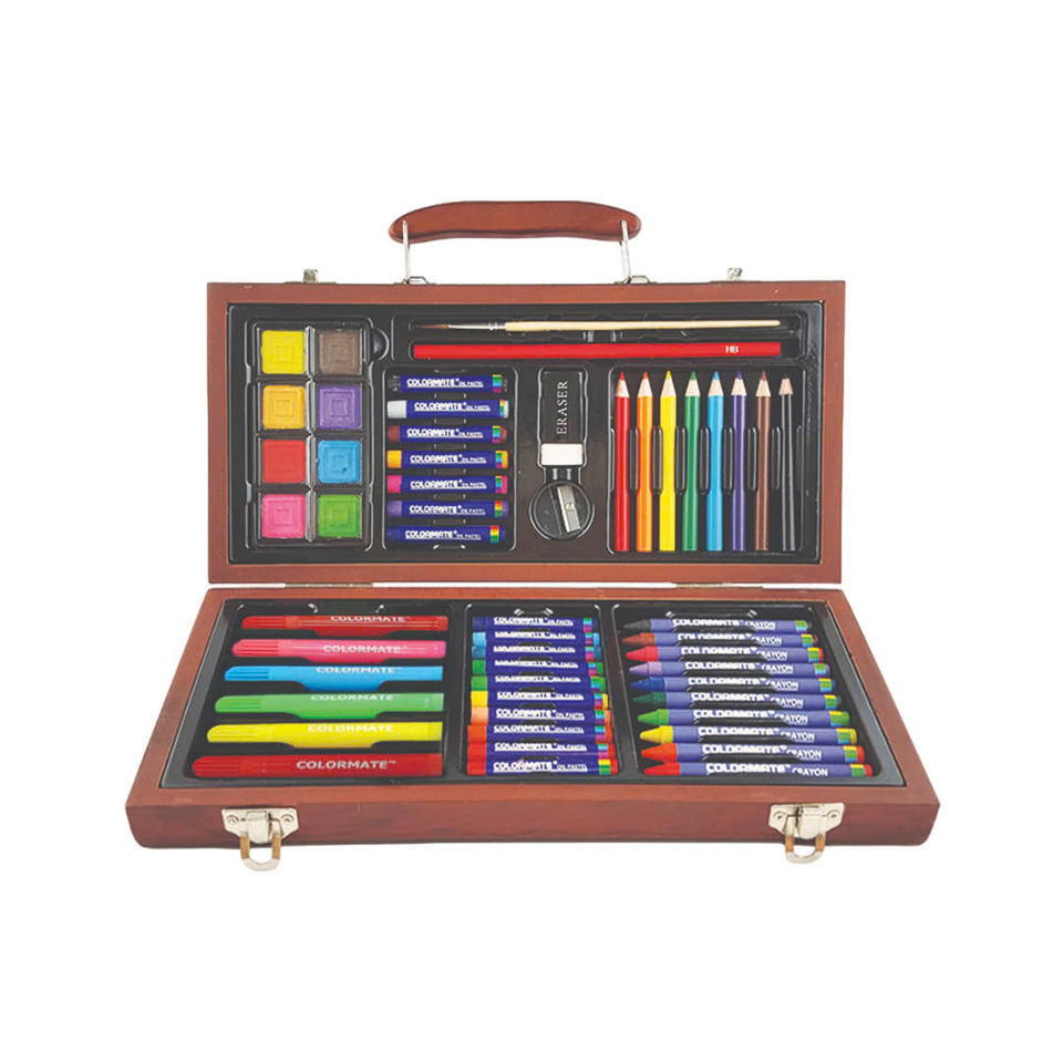 ชุดศิลปะสำหรับเด็กหลากสี90ชิ้นพร้อมดินสอสีและกล่องเก็บไม้แบบพกพา