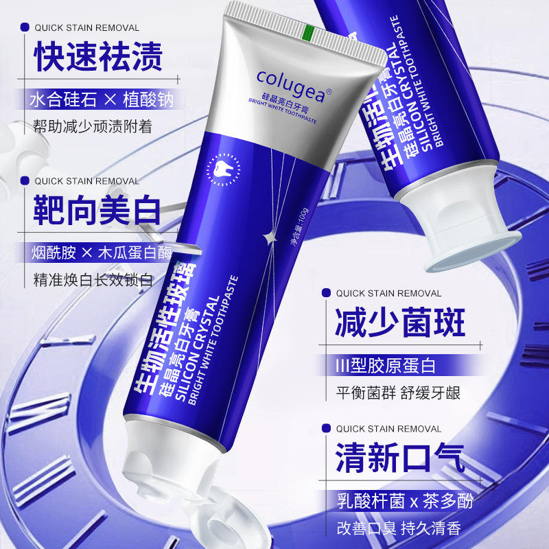 ยาสีฟันโคลูเจีย ซิลิคอน คริสตัล ไบรท์ ไวท์ 100 กรัม สูตรไวท์เทนนิ่งด้วยแก้วชีวภาพ สำหรับฟันและเหงือกที่บอบบาง