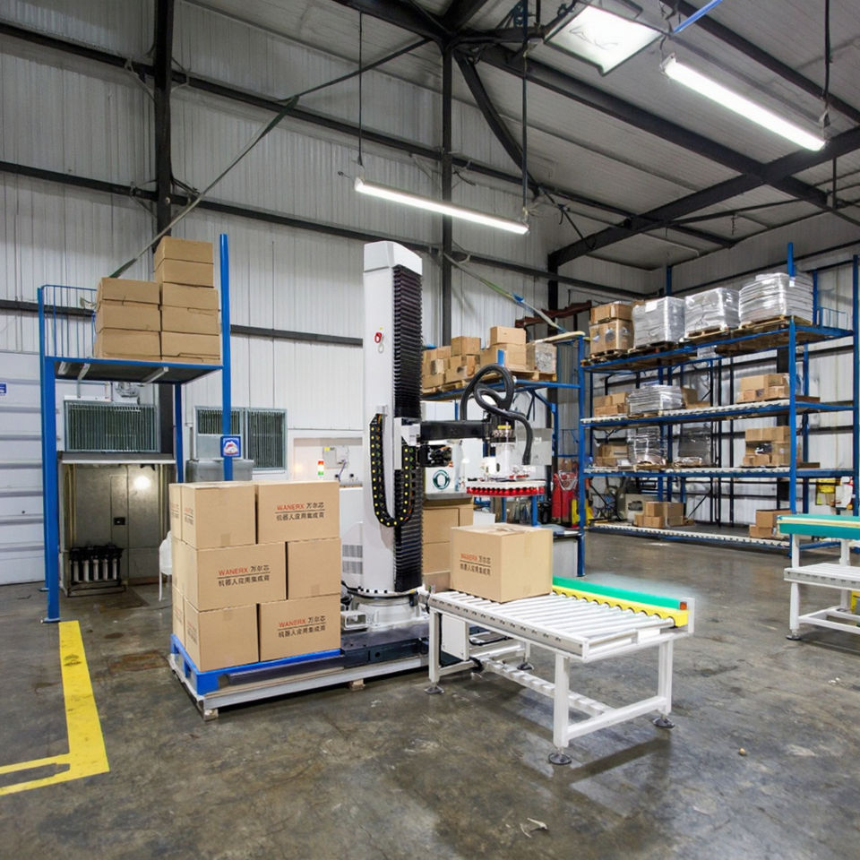 แขนหุ่นยนต์จัดเรียงพาเลทอัตโนมัติแบบไฟฟ้า รับน้ำหนักได้ 100 กก. สำหรับสายการผลิตอาหารและเครื่องดื่ม กล่อง/สายพาน ผลิตภาพสูง