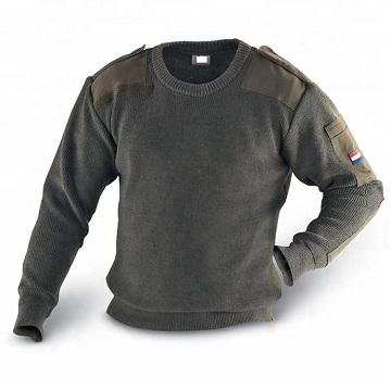 เสื้อสเวตเตอร์ขนสัตว์ผู้ชายสีเขียวทหารสำหรับฤดูหนาว รับสกรีนโลโก้ ไม่หด ไม่ยับ ระบายอากาศได้ดี