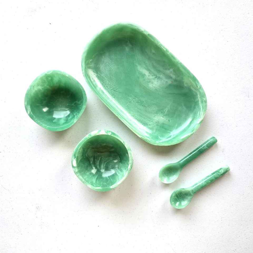 ชุดชามและถาดเรซิ่นงานฝีมือผสมผสานงานอีพ็อกซี่คุณภาพพรีเมียม สำหรับใส่ขนม ผลไม้อบแห้ง และงานศิลปะเรซิ่นที่มีสไตล์หรูหราทันสมัย