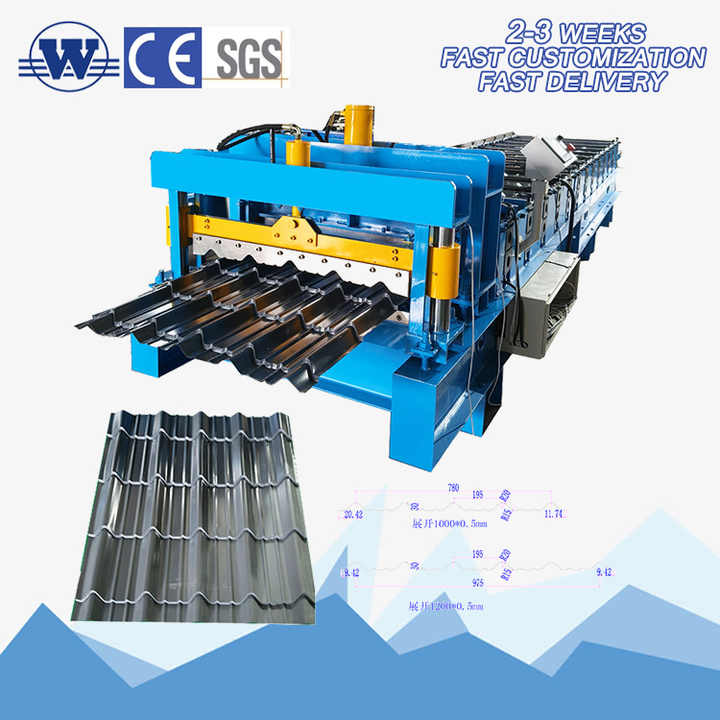 เครื่องจักรผลิตวัสดุก่อสร้างแบบชั้นเดียวรวมกัน เครื่องขึ้นรูปลอนหลังคา เครื่องทำหลังคาทรงสี่เหลี่ยมคางหมูชั้นเดียว