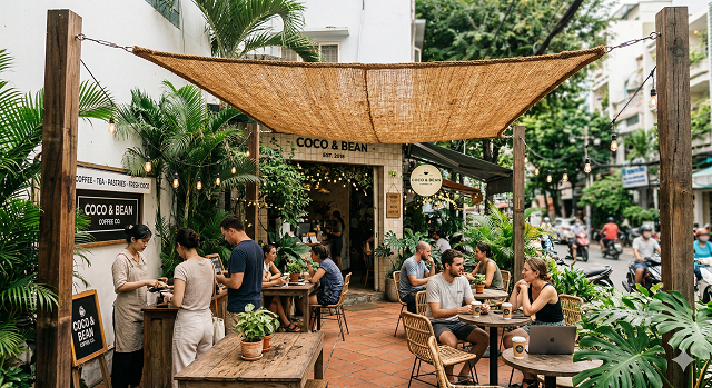ผ้าบังแดดใยมะพร้าวทรงสามเหลี่ยม 5 ขนาด รุ่น Combo - ECO2GO VIETNAM หนา 3-4 มม. เป็นมิตรกับสิ่งแวดล้อม สำหรับกันแดดกลางแจ้ง เหมาะสำหรับลานบ้าน สวน และร้านกาแฟ