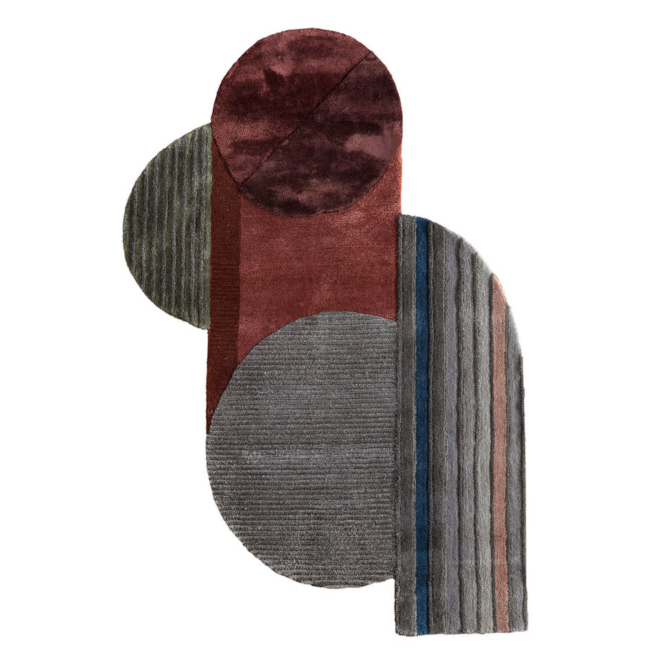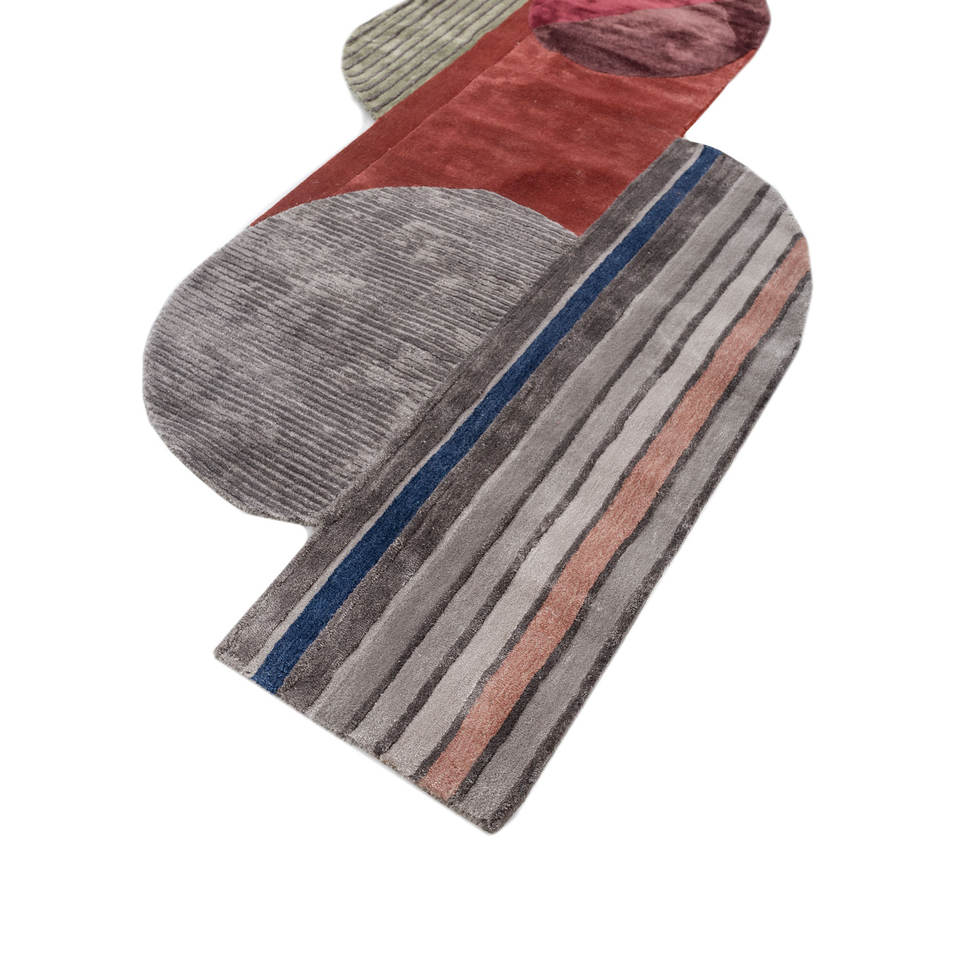 พรมขนสัตว์และวิสโคสทอมือสีเบจและสีน้ำตาล รูปทรงสี่เหลี่ยมผืนผ้า ลายแบบนามธรรม สำหรับห้องนั่งเล่นและทางเดิน รุ่น Tnq-1137
