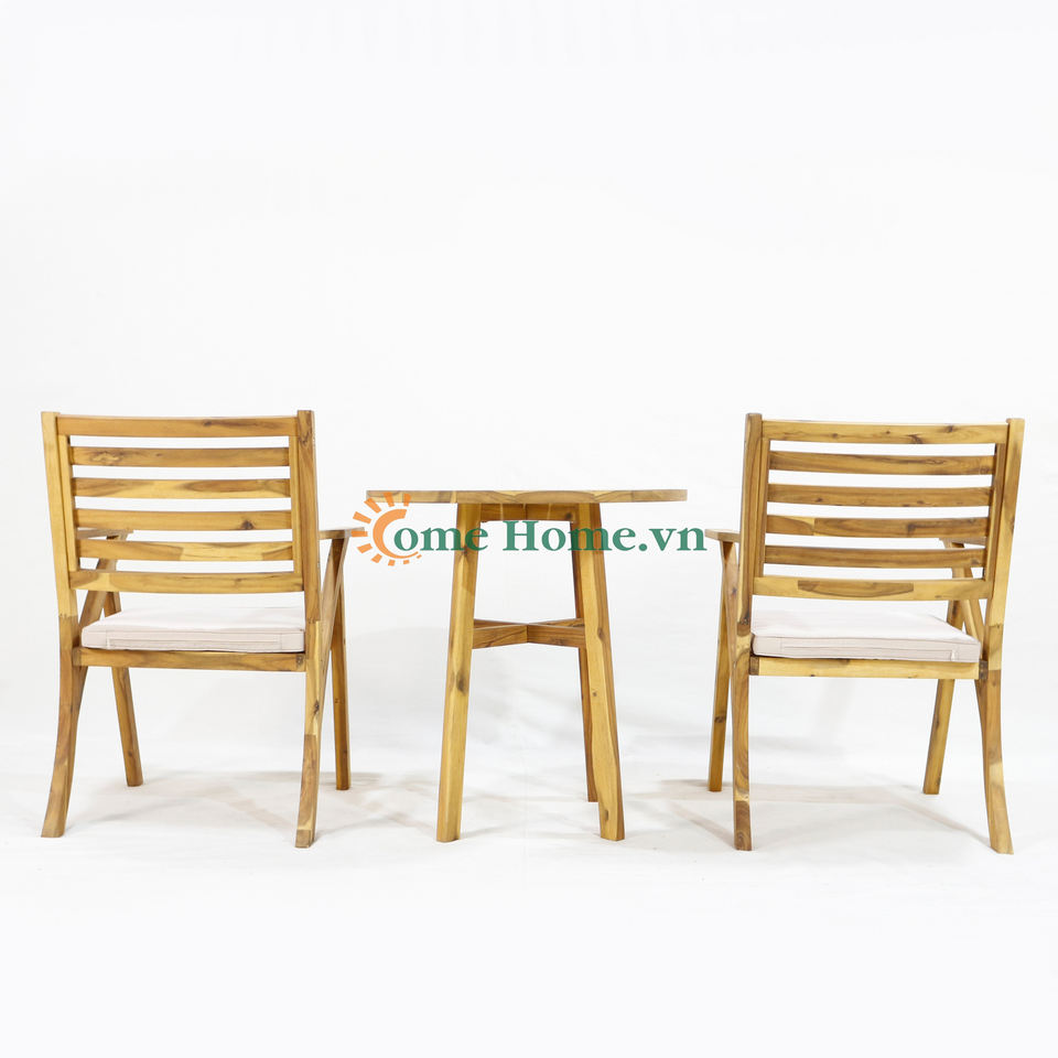 ชุดเก้าอี้บิสโทรไม้กระถินณรงค์ Comehome พร้อมเบาะนุ่มสีขาว